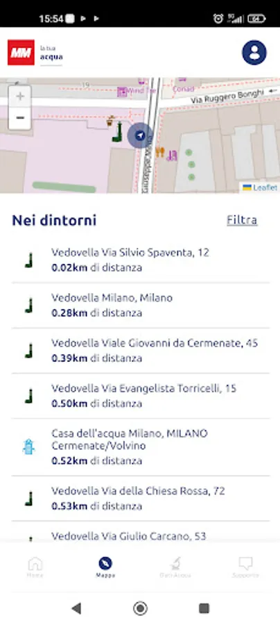 • MAP: to find the widow or the water house closest to you and to always be informed about the work in progress along the aqueduct and sewer network in Milan