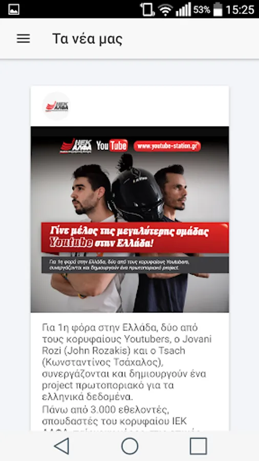 With this application, you can learn all the latest news IEK ALFA in Thessaloniki while you at the same time informed about the various unique events organized by our IEK. Also downloading the application, you receive significant discounts on all partner Us stores gaining in entertainment, clothing, food and more! Finally, through the application, you can easily and simply to locate our store and get directions on how to easily get to it.