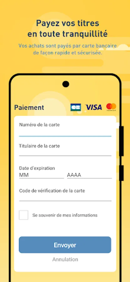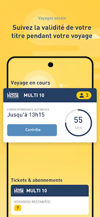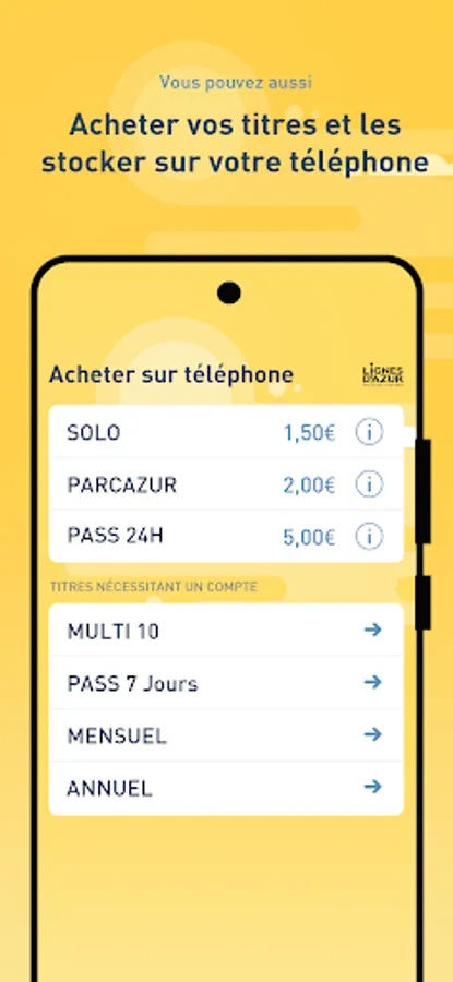 Your transport tickets are now stored in the “Carte Lignes d’Azur Mobile” extension. Thanks to it, you will no longer lose your tickets if you delete the Lignes d'Azur Tickets application. When you first purchase a title on your phone, you will be guided through the installation of this extension.