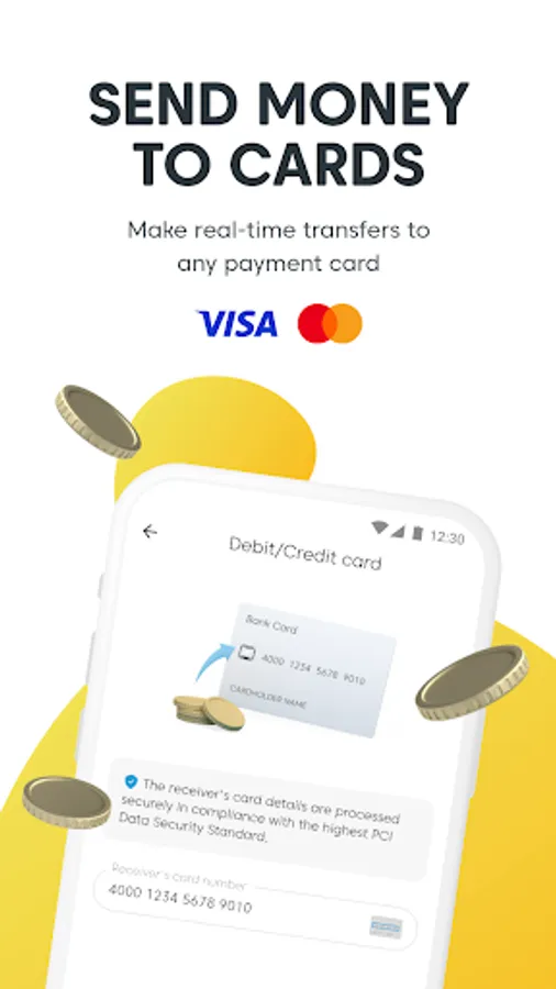 You get 2 virtual cards Visa and Mastercard for secure online shopping and free debit card iCard Visa for payments in stores and cash withdrawals. Control your card settings with ease, like card freezing or spending limits. Never miss a thing – keep an eye on your payments with instant push notifications.