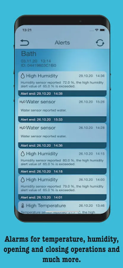 The self-explanatory graphical user interface of the app can be operated intuitively and can be customized individually to suit your needs. Set an own name for each sensor and set specific alarm limits. Exceeding the alarm limits on your sensors will lead to an immediate fault report on your smartphone, which offers you the safety-PLUS.