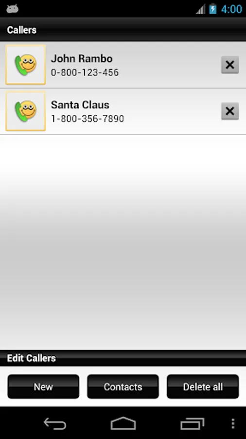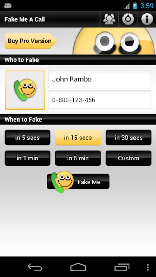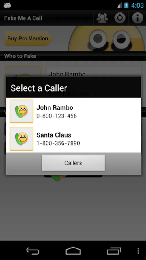 - Define a list of up to two fake callers (unlimited in Pro version)