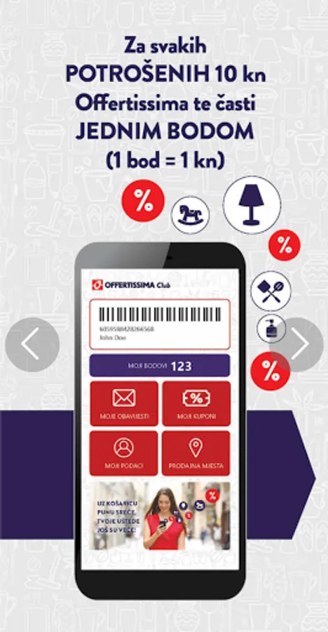 The free Offertissima club app is an easy way for you to participate in Offertissima's loyalty program. In a few simple steps, activate the application and use it during the purchase in all Offertissima outlets, and collect and use points with each purchase. This application will inform you about current benefits, novelties, top offers, make it easier to find the nearest store and opening hours. Let your mobile phone be a ticket to Offertissima club benefits!