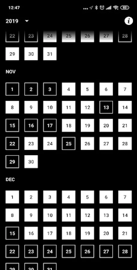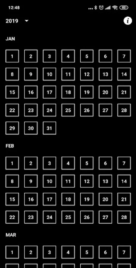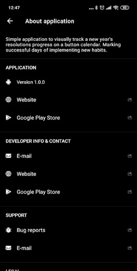 Simple application to visually track a new year's resolutions progress on a button calendar by marking successful days of implementing new habits.