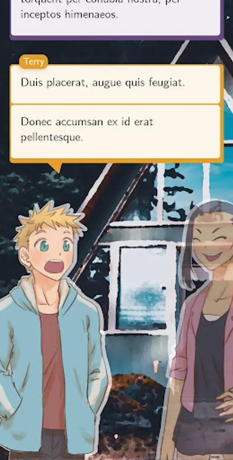 Storytelling Engine is a native, easy to edit, base Android application for creating character driven kinetic novels. This is demo application showcasing all current capabilities of the "engine" - it is an example of what it can be used for and a helpful starting point for editing.