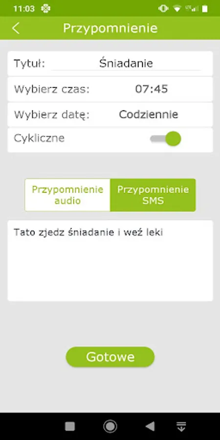 Remote setting of the reminders on the 4family user