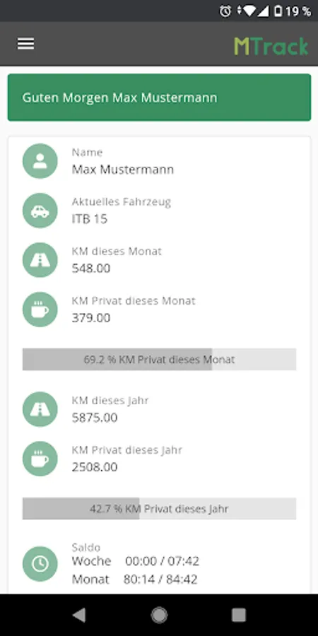 In order not to miss any maintenance and appointments, the driver sees all personal appointments on his MTrack Go login. As soon as he is logged on to a vehicle, all appointments and maintenance that are assigned to this vehicle are visible. This tool helps to relieve both the driver and the dispatcher, because the driver can see at a glance which appointments are coming up for him and/or his vehicle in the near future. Vehicle-related appointments are monitored using the four-eyes principle, because both the driver in the driver app and the dispatcher have access to them.