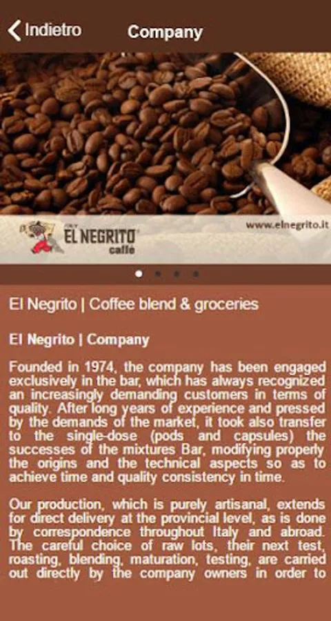 The Company, the products of the roasting, the coffee blends for Bar, Public exercises, Restaurants, Pizza, Clubs, Community Organizations and the private. Coffee beans to be ground, ready-mix, and last came the pods and capsules, single dose. Mixtures Bar, Superior, De Luxe, Special, and Home.