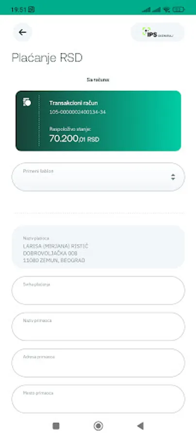 • Possibility to pay bills and transfer funds to the accounts of individuals and legal entities in dinars