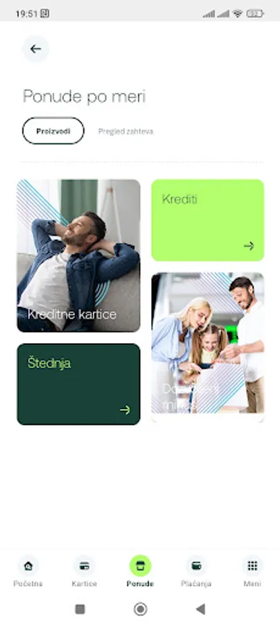 Possibility of online acceptance of the bank’s offer for the following products and services: