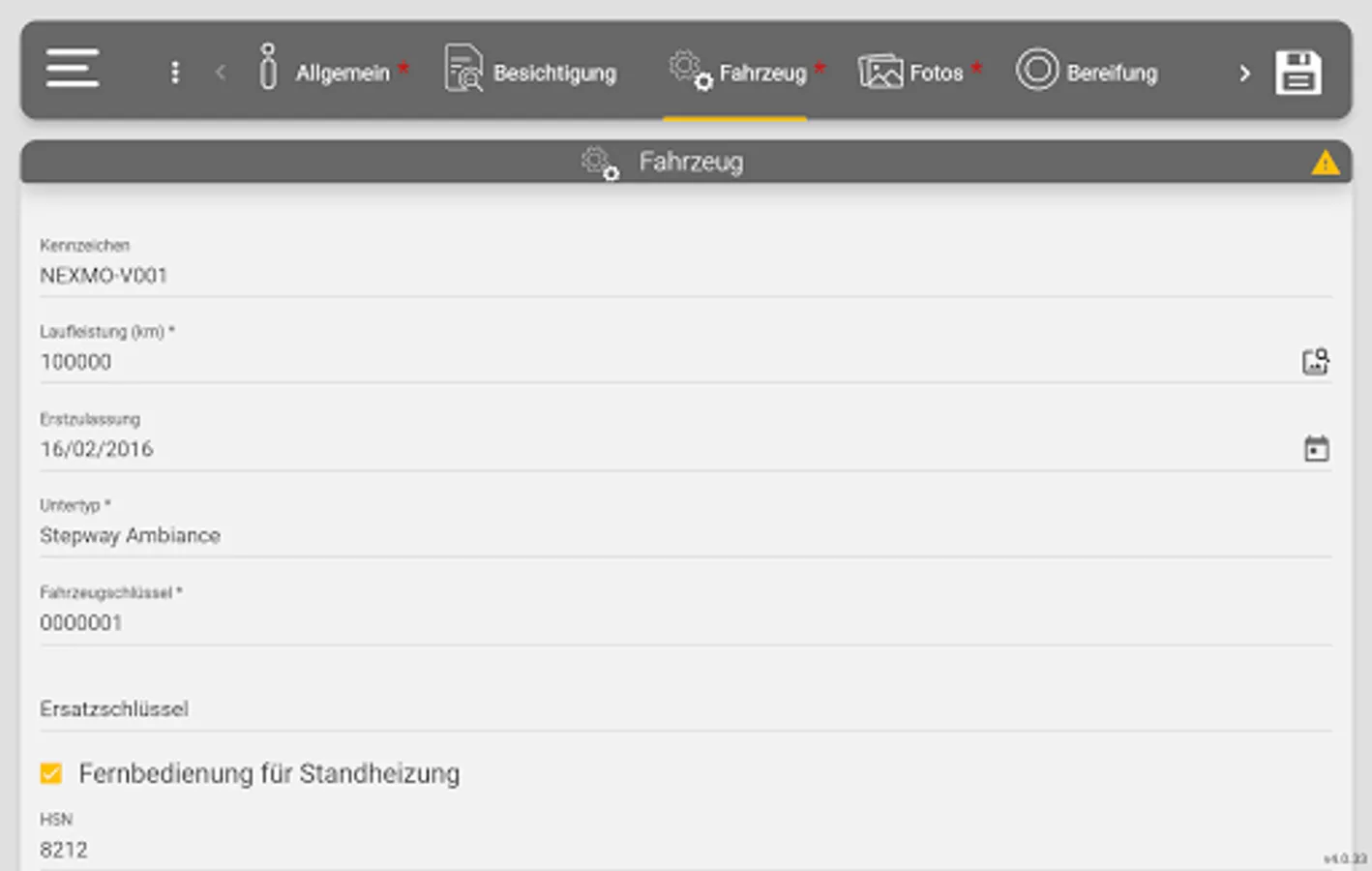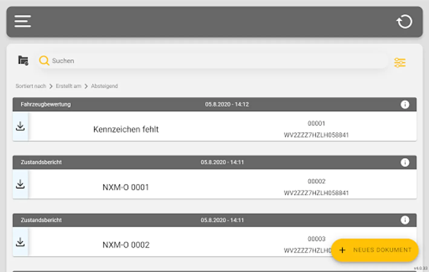 With the -TUV Rheinland NEXMO app, we offer the possibility of capturing all relevant data intuitively and in detail directly on the vehicle and making it available for further processing in the web portal for the creation of various vehicle documentation, from status reports to check-outs and check-ins, to impairment reports or vehicle evaluations to deliver.