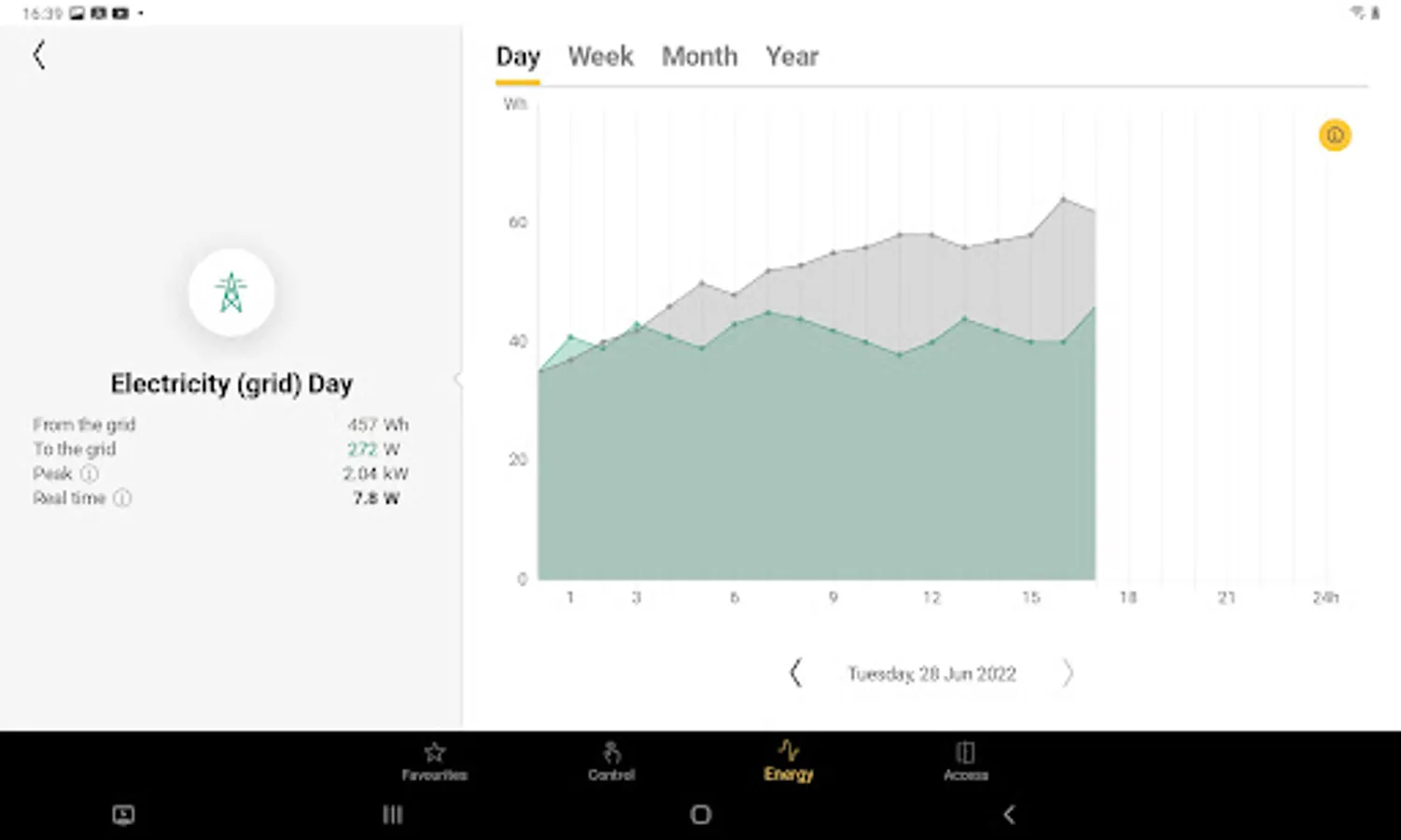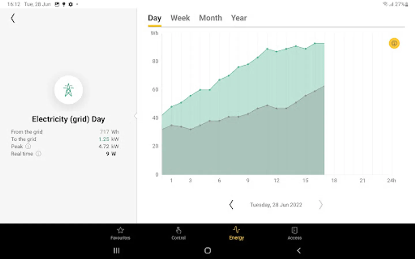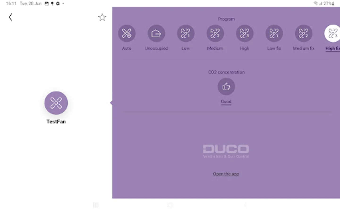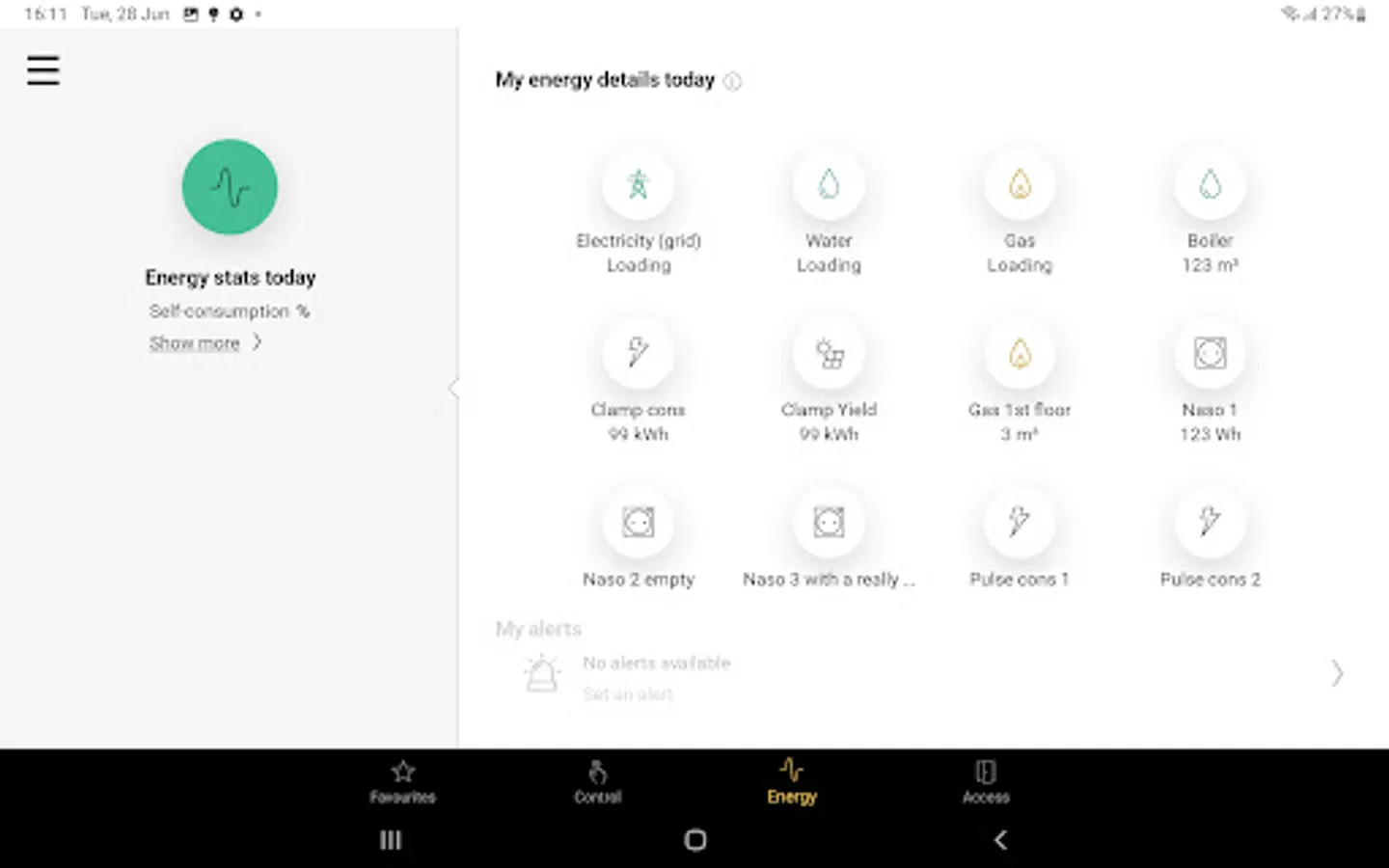 All controls are listed per room. Remotely control your (dimmed) lights, ventilation, roll-down shutters or sun blinds. Instant feedback.
