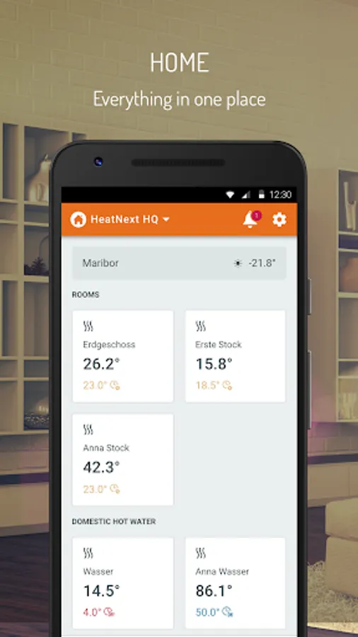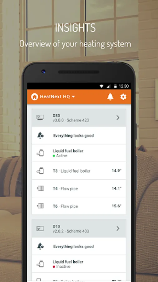 - Overview of measured temperatures in your heating system