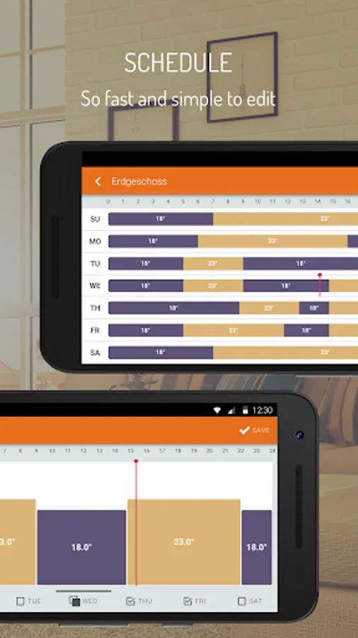 - Set up to 2 different heating schedules