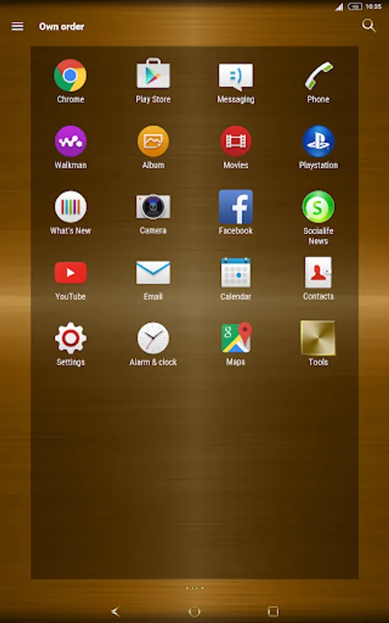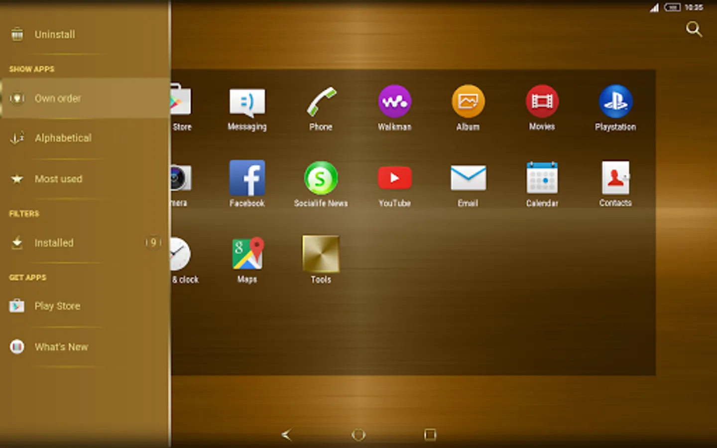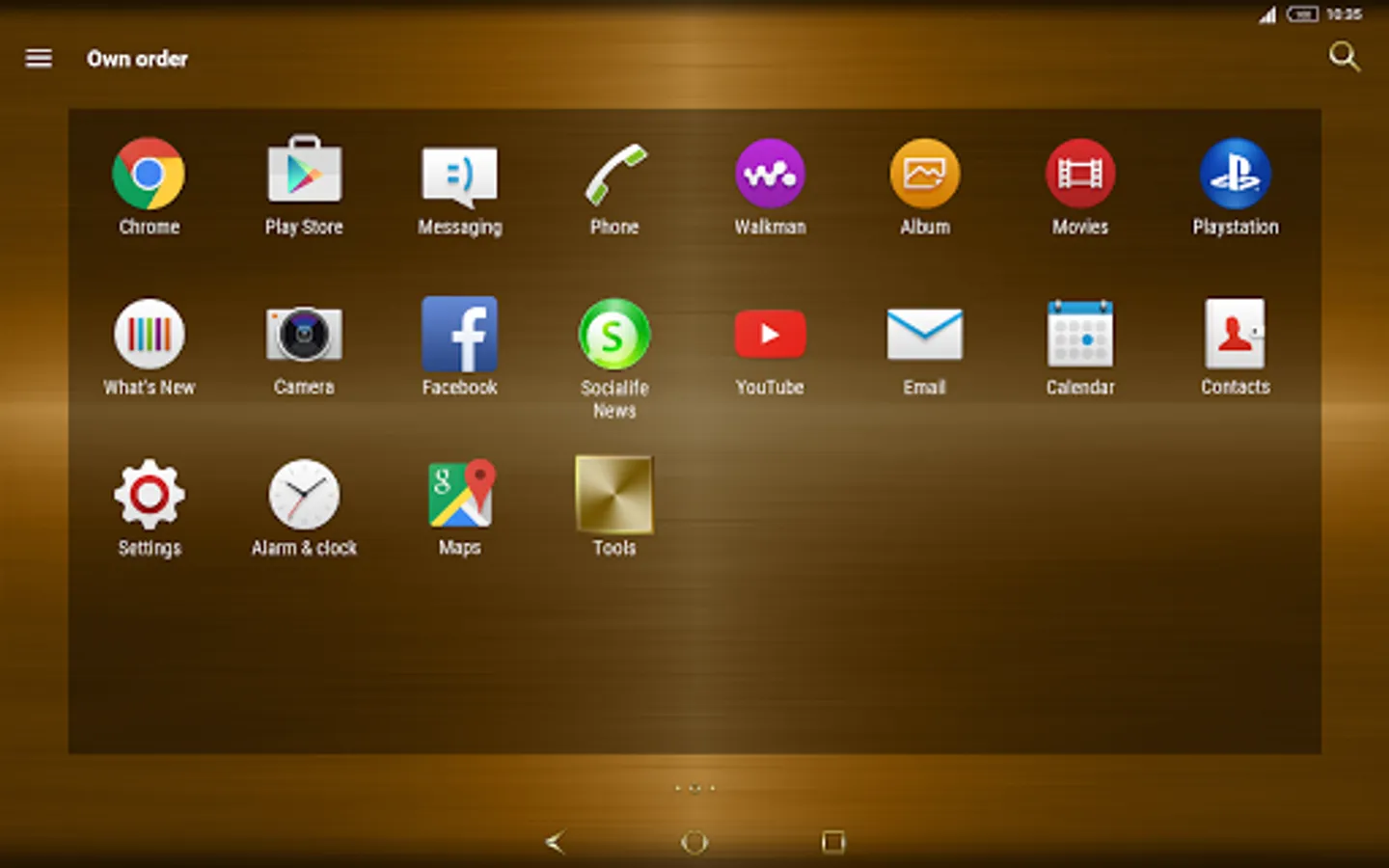 Download the Gold Plated Theme and turn your Sony Xperia™ Phone or Tablet into a new jewel! All golden assets and colors have been carefully designed to avoid to look too flashy and for the best readability, with an elegant touch. Try it now and you'll add to your Sony Xperia™ Phone or Tablet the value only Gold can give!
