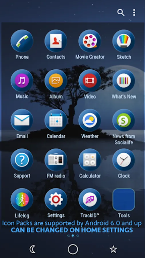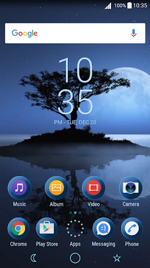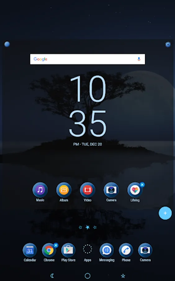 Download the Luna Blu theme on your Sony Xperia Phone or Tablet to enjoy the feeling of a beautiful blue night with a full moon.