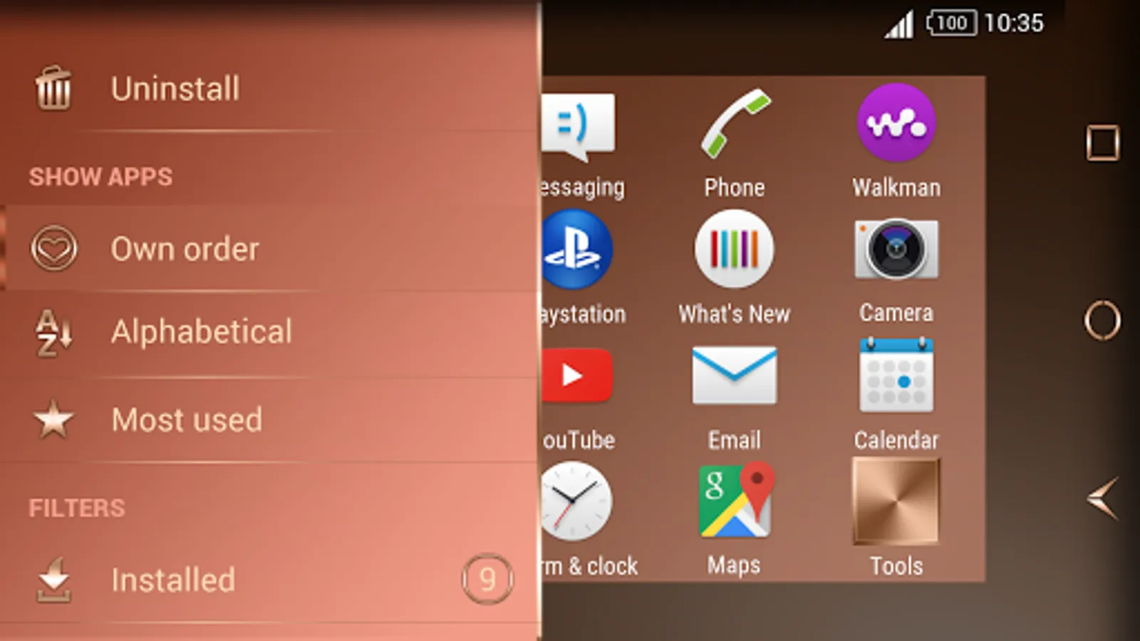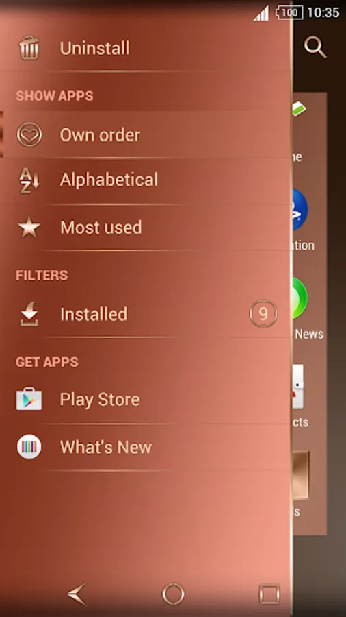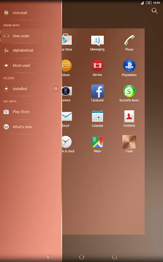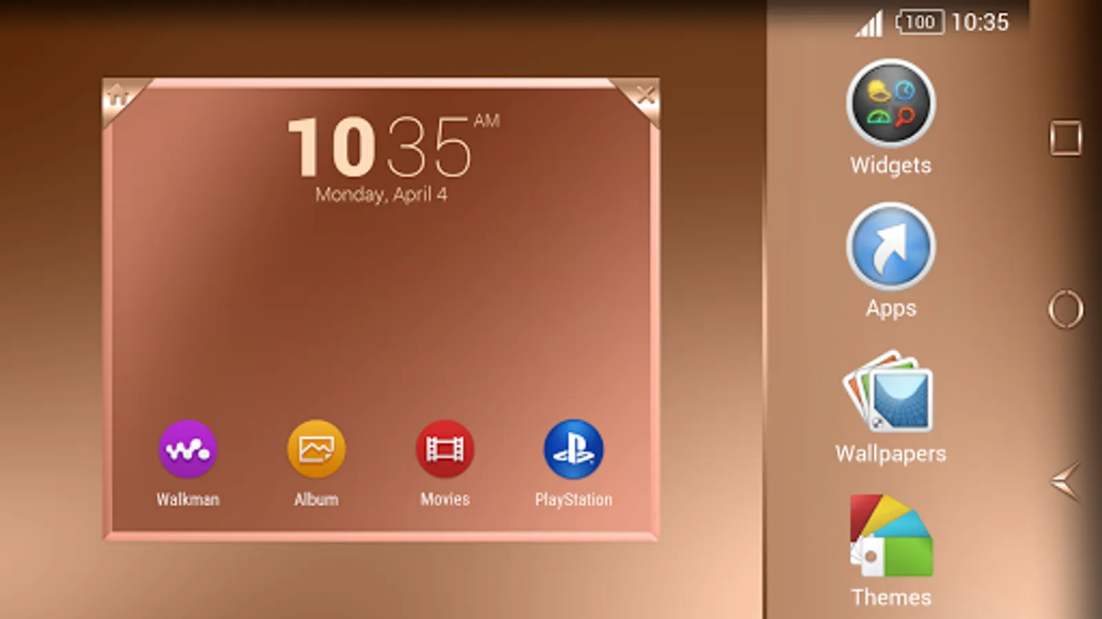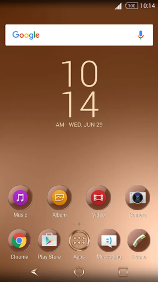 Download the Shiny Copper theme on your Sony Xperia Phone or Tablet and enjoy the new beautiful, Copper look. It will match perfectly with your Copper Xperia!