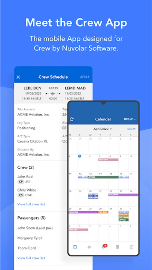 The Crew App enables you to have quick and easy access to your calendar online and offline, as well as to all of your flight-data for flights you’re scheduled on. You can also create and submit your Tech Logs on the go!