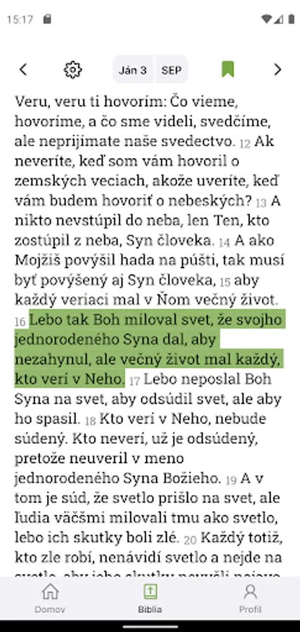 The application offers 3 Slovak translations (Evangelical, Roháčkov and Ecumenical) and 1 English (New International Version). Fully responsive interface allows use on mobile devices and tablets.