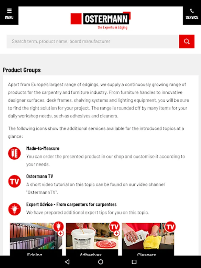The Ostermann App offers business customers a simplified way of ordering Europe’s largest range of the edging. High quality edging and accessories can be easily found for Interior Design, Shop fitting and furniture production.