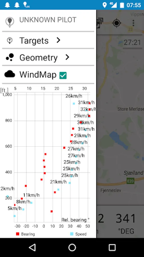 - WindMap and Projections: The app keeps track on direction and velocity of winds in all altitudes you have been to, visualized as projections on the map!