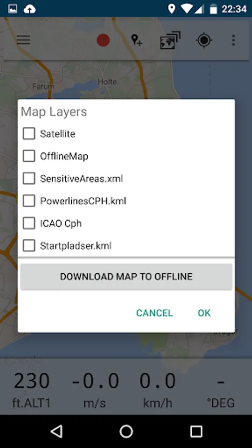 - Logging: View, interact and share recorded tracks. Upload you logs to Drive/Dropbox or share by email