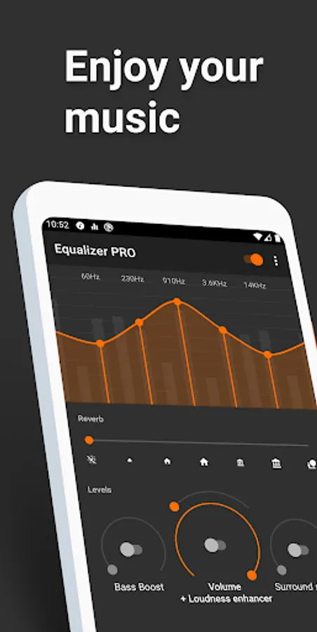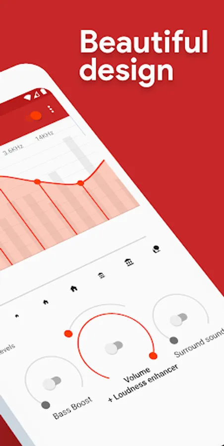 Save custom presets for each headphone or speaker, edit or delete them easily. Turn on the integrated loudness enhancer and hear your music even more intensive.