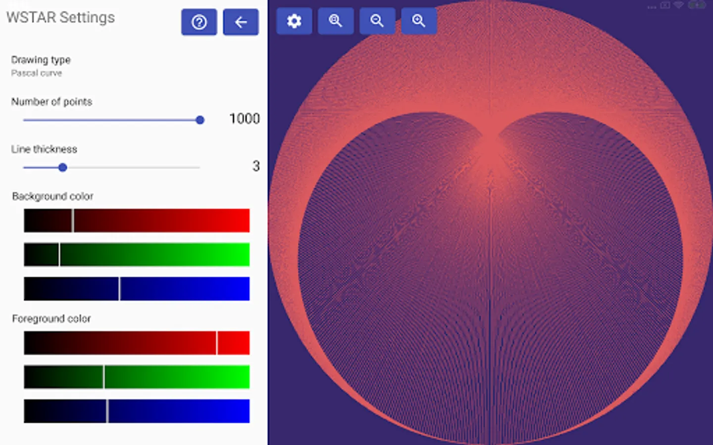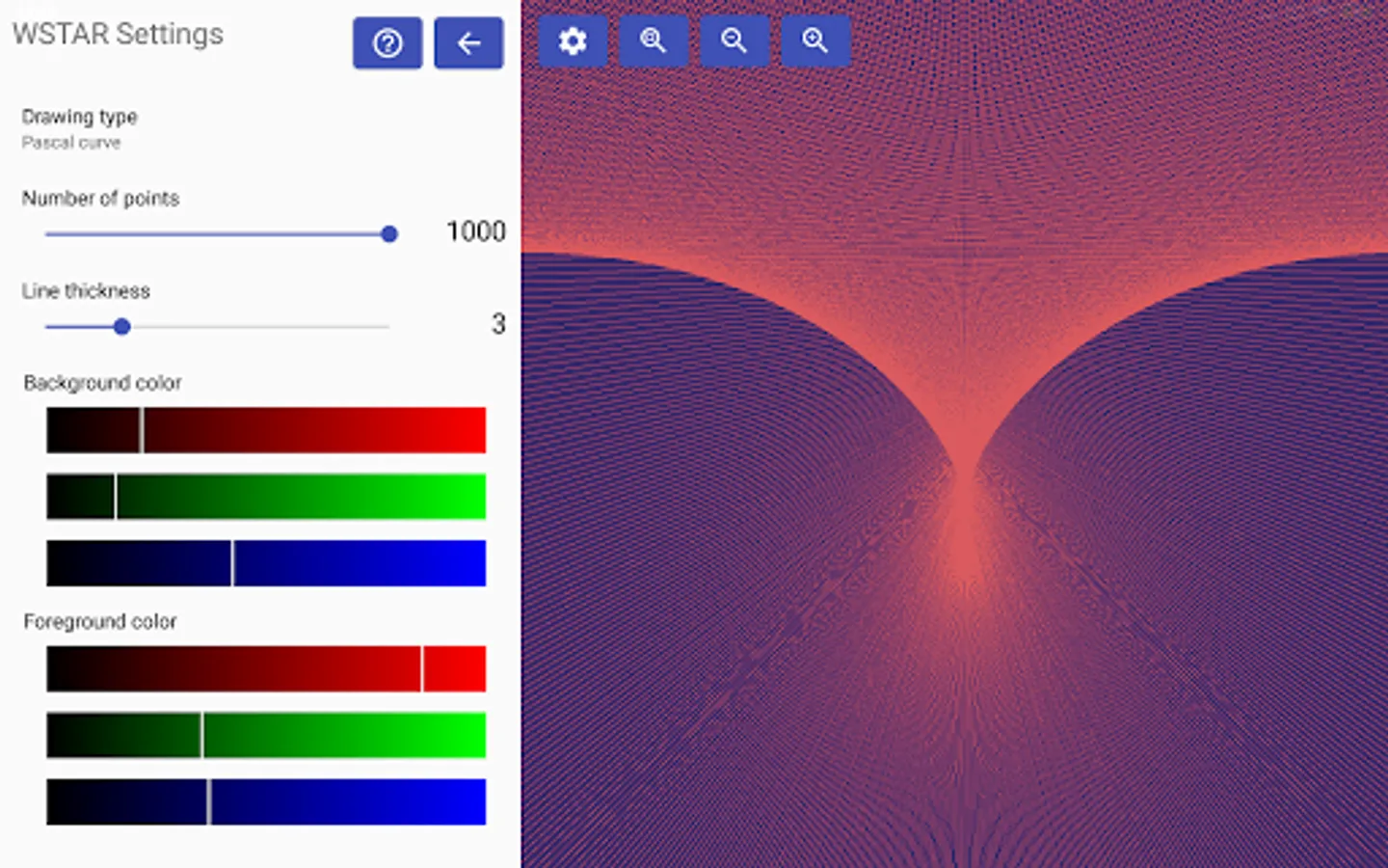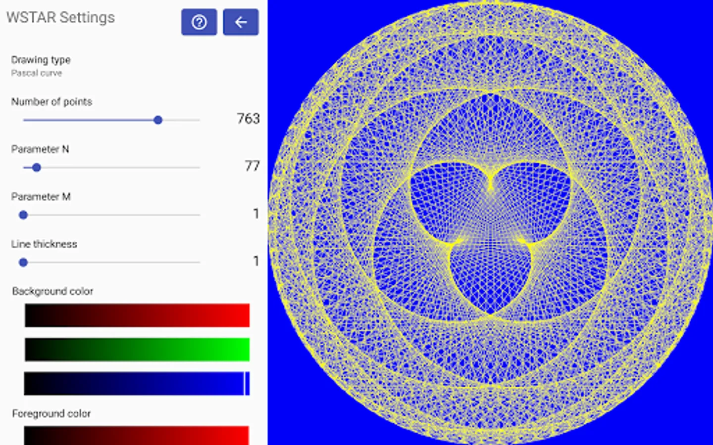 This is my favorite pet application. I call it WSTAR. It has many variations, the original WSTAR, the Pascal curve and the Nephroid, and now even this pay version that combines them all.
