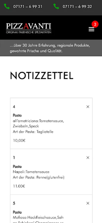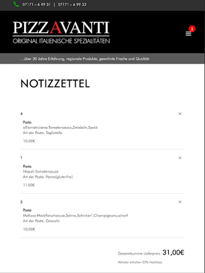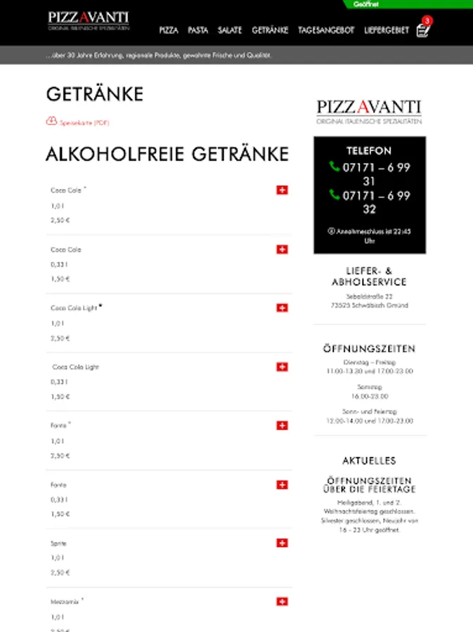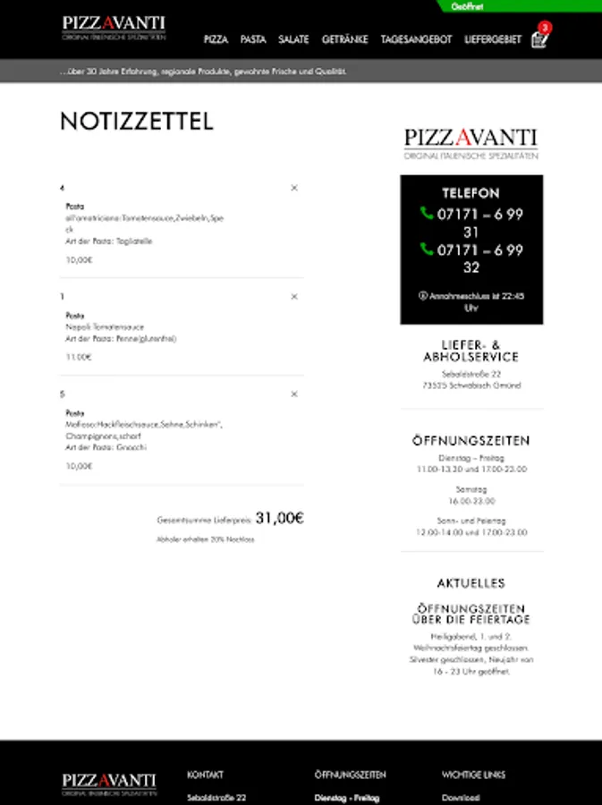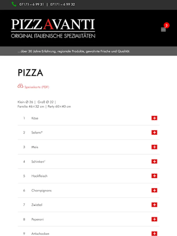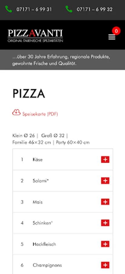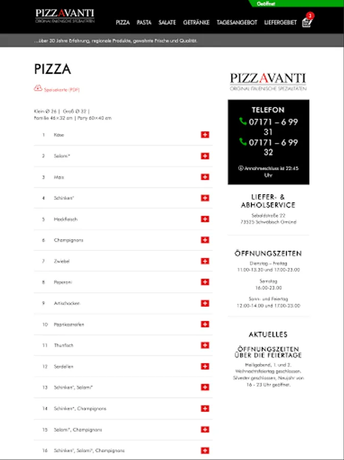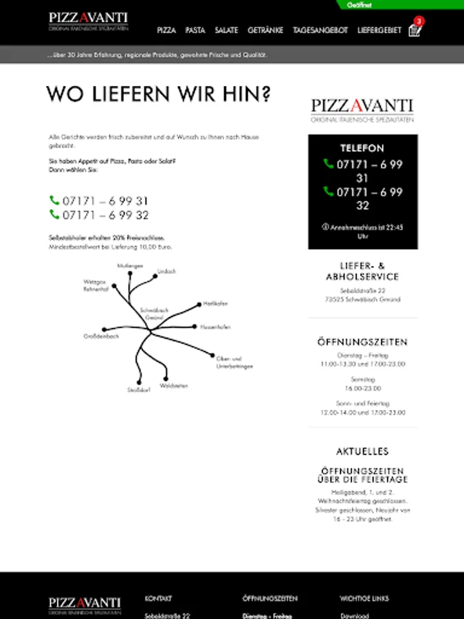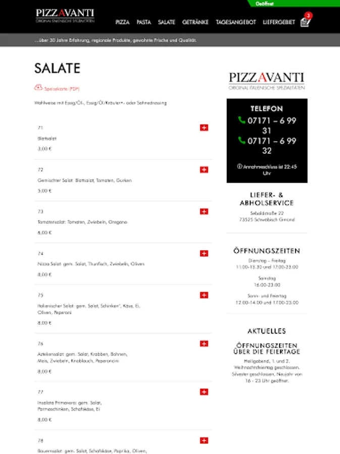 PIZZAVANTI has been offering you tradition, regional products, the usual freshness and quality for over 30 years. - We are your delivery service for Schwäbisch Gmünd and the surrounding area. With us you will find pizza, pasta and salads: regional, sustainable and absolutely delicious.