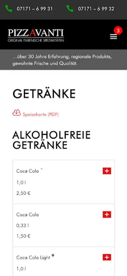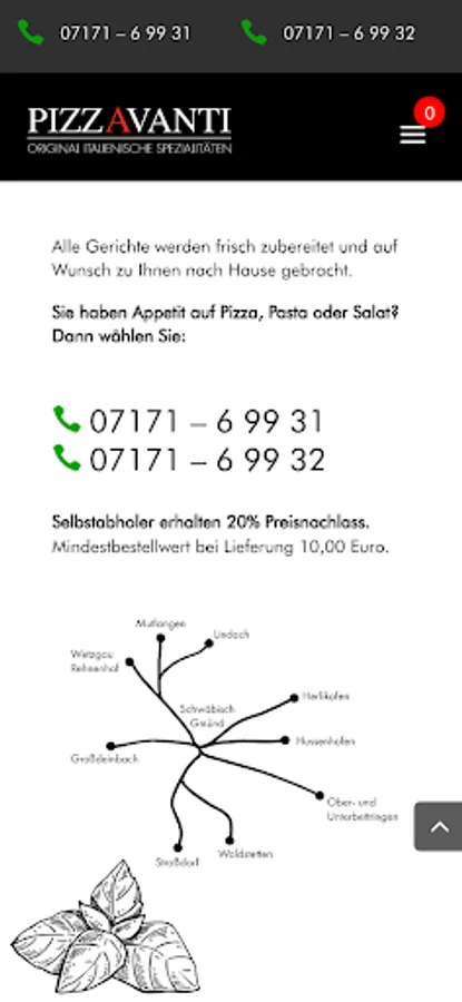 Here you will find our menu, our changing daily specials, and we will inform you immediately about every news. With just one click you have dialed our number and you can place your order with our next freelance employee as usual.