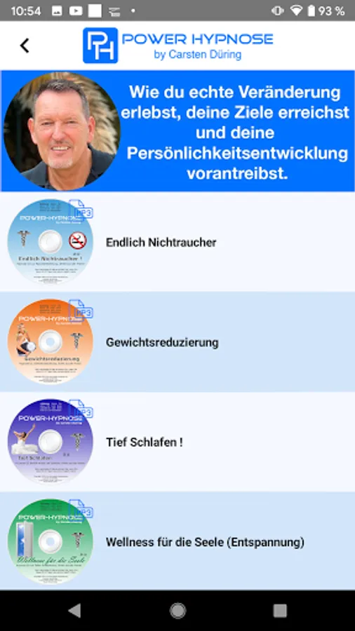 Developed and spoken by the hypnotist, trainer and coach Carsten Düring. Carsten Düring has been involved in hypnosis since 1989 and has performed thousands of hypnoses. Its success rate is over 80%.