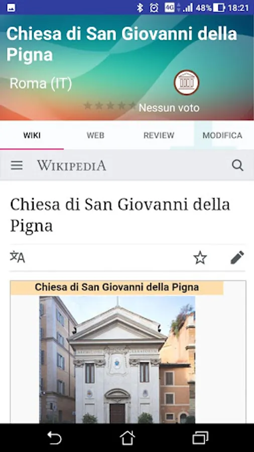 The APP allows the user to point a landmark with his smartphone camera and visualize a marker on it, linked to an info sheet or an external link (Wiki page or other) and to Google Maps for navigation.