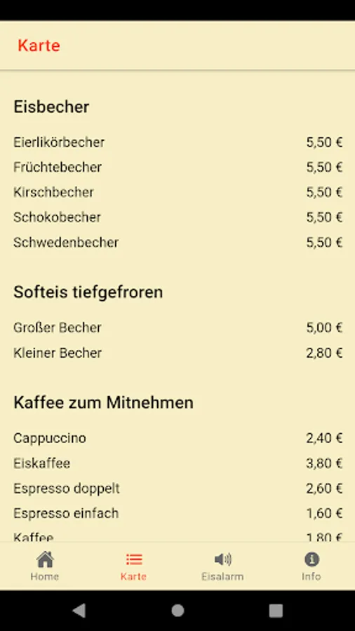 Of course, the entire range of the ice cream shop is also displayed. And if you don't know where to go, the store is also shown on a map.