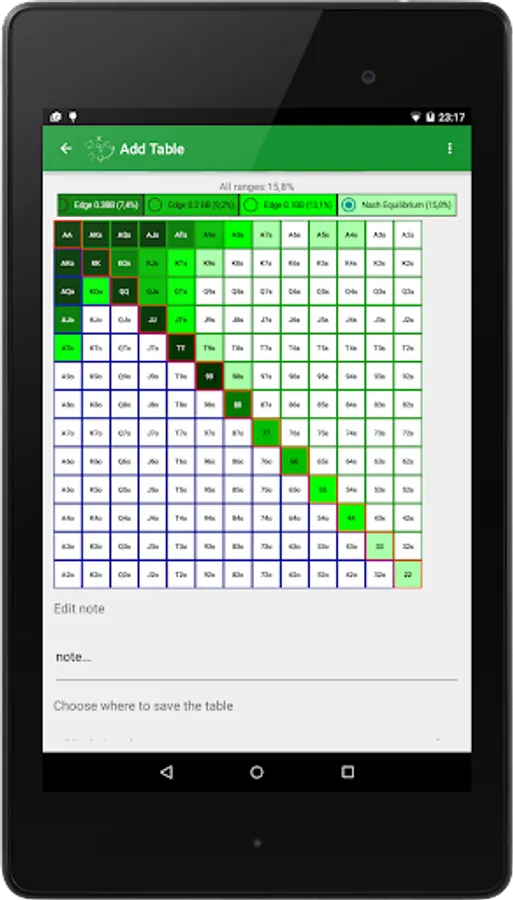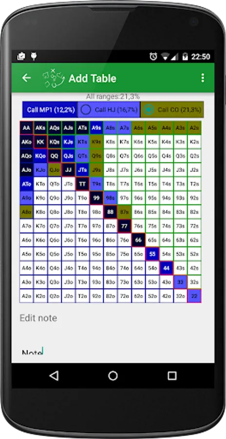 Have quick access to it. Only 2-3 clicks and you have access to all information: ranges in different situations, notes.