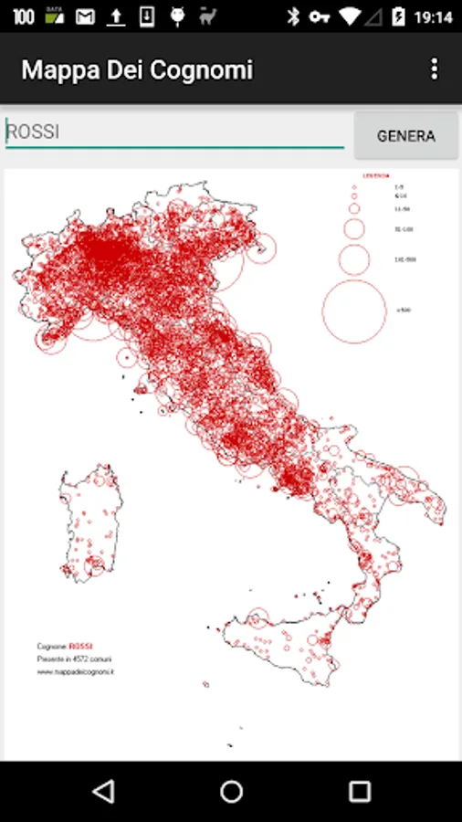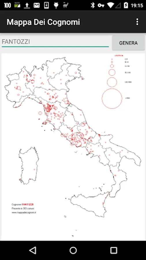 Easily creates map the geographical distribution of your last name in Italy and share it with your friends. Enjoy generate maps of the surnames of your acquaintances.