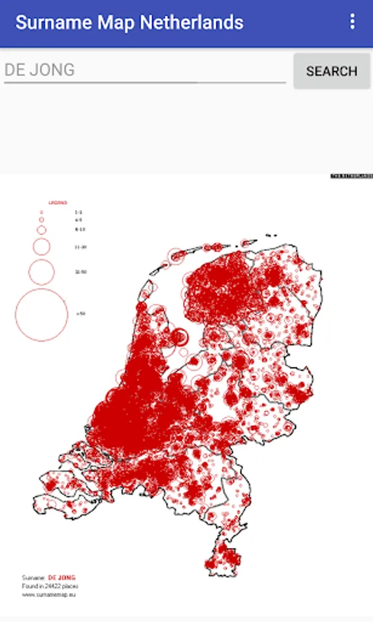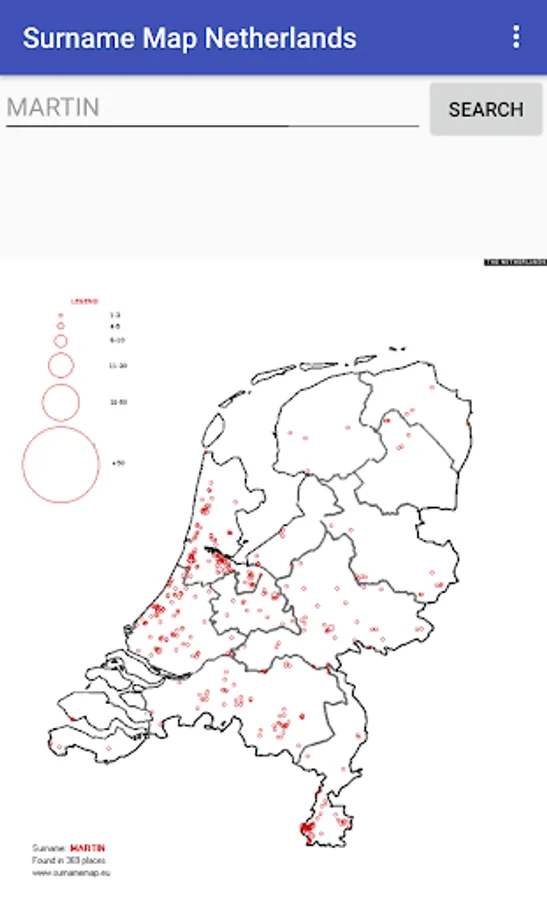 Generate geographical surname map of your surname in Netherlands and share it to your friends. Enjoy to generate maps of all people you know.