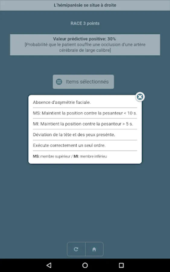 Échelle neurologique able de prévoir d'une façon très simple and reliable the présence d'une occlusion d'une artère cérébrale of large caliber. Adressée à l'évaluation préhospitalière.