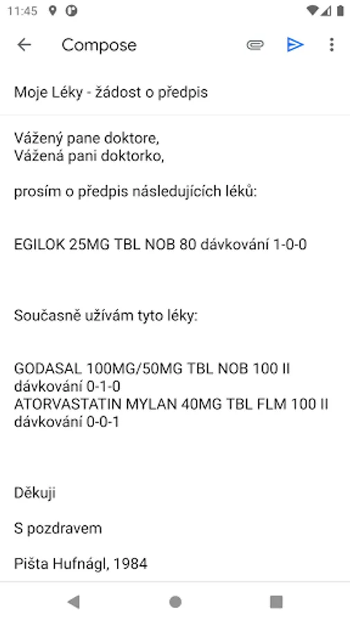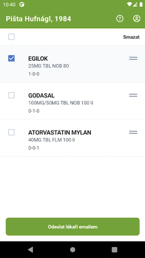 The My Medications application allows you to conveniently and efficiently send a prescription request to your doctor by email. It also serves as an up-to-date list of medicines used, which your doctor requires at every assessment of your health. You don't have to remember anything, all you have to do is enter your list of medicines in the application, including choosing the right weight and dosage.