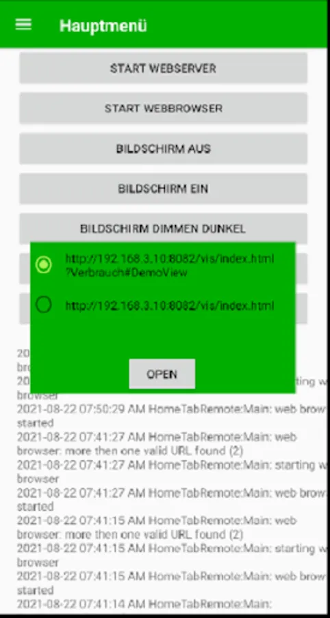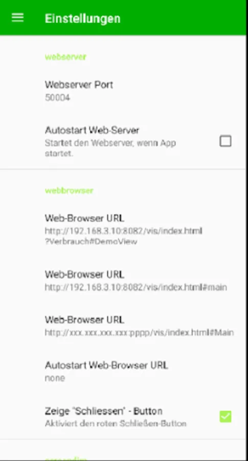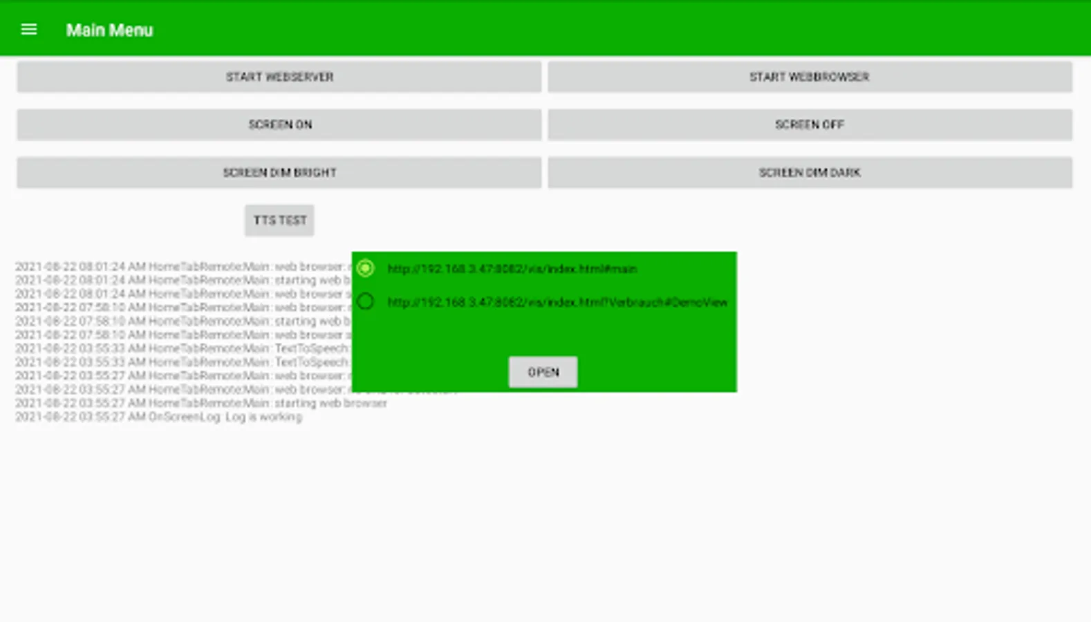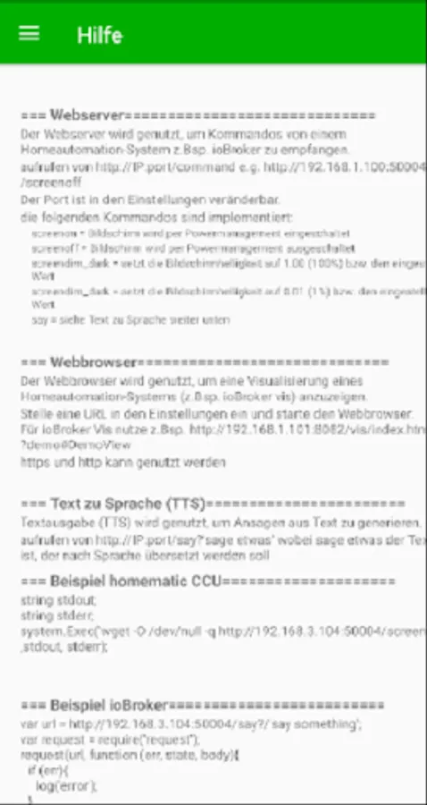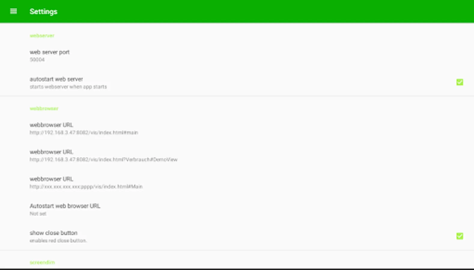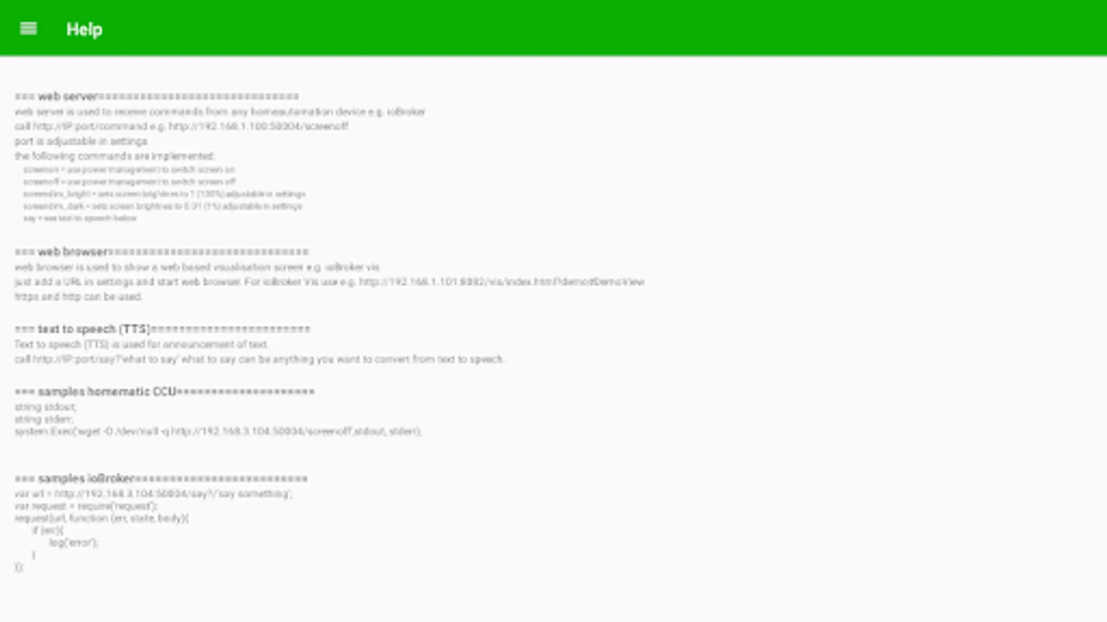 Allows the tablet to be turned off and on or dimmed using remote commands. In addition, the app includes a webview for displaying web-based home automation visualizations e.g. vis for ioBroker or others.