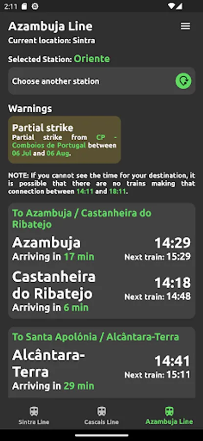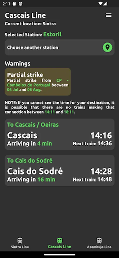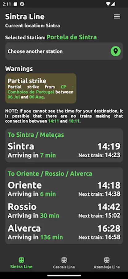 It was created to show the times of the next trains that will pass by, either at the nearest station, or at a station of your choice.