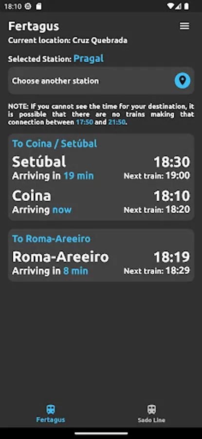 It has been created to show the timetables of the next trains that will pass, either at the nearest station, or at a station of your choice.