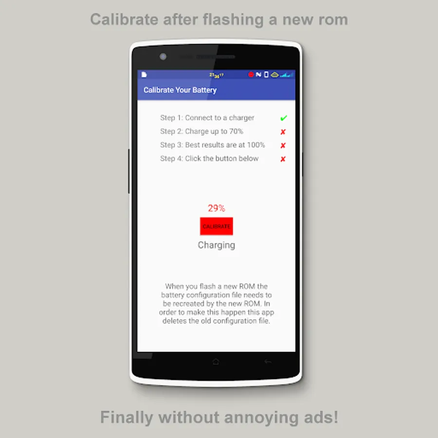 This is a Data Privacy respecting app without any trackers, ads or unneccessary permissions:https://reports.exodus-privacy.eu.org/en/reports/search/eu.roggstar.batterycalibrate/