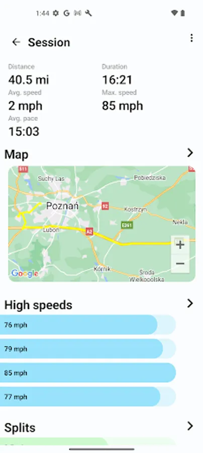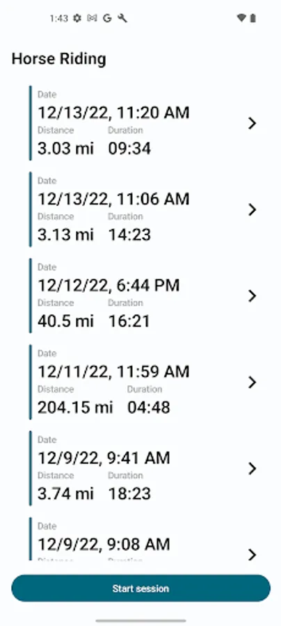 There is option to playback your session on map to see time, distance and speed in each part of your ride, for each session you can add your own notes such as horse name, breed, stable, saddle etc.