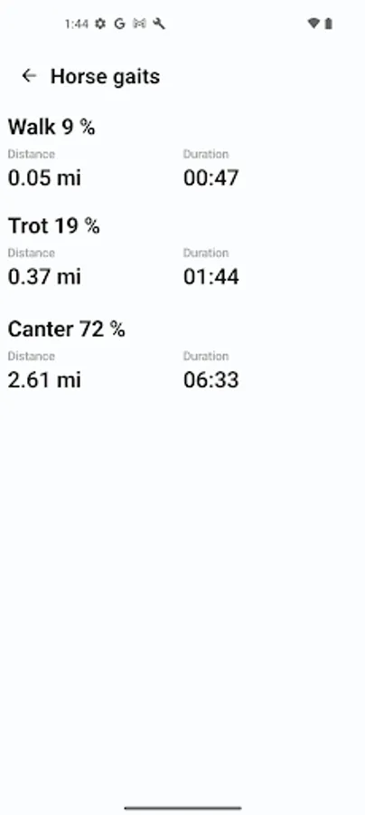 Finally you can see distance and time you was going in each of the horse gaits including: