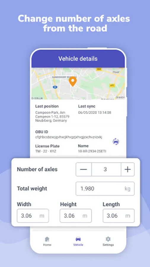 OBU1 Driver is meant to keep drivers informed with regard to their OBU device and allows them to change vehicle characteristics from the road (e.g. number of axles), so that the value of the road tax is calculated accordingly*.