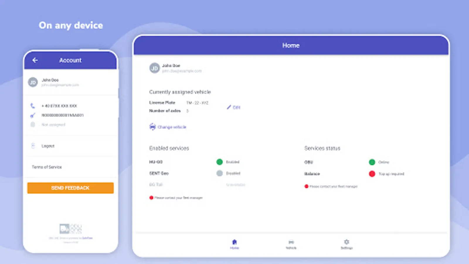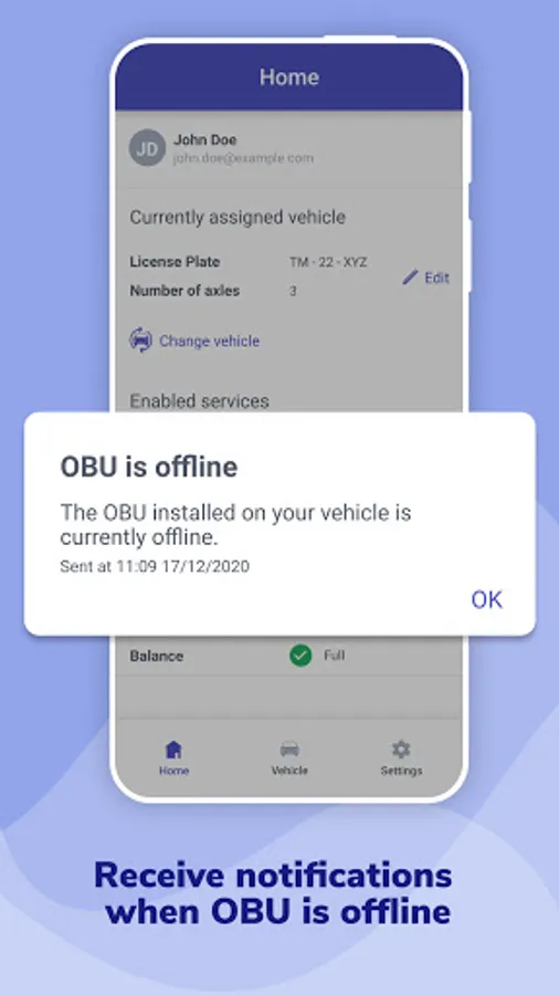 • receive notifications when OBU device is offline or not working properly