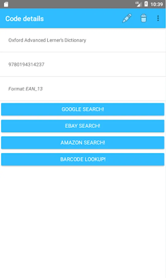 Ever tried to find a lower price for your favorite shoes? Maybe you tried to buy the very same calendar for the next year? Ever bought this hinge for your kitchen’s cupboard and now you need to buy exactly the same for your bedroom’s closet but you don’t know the name or a manufacturer? If you answered yes to at least one of those questions, you should definitely use Scan & Find. Take an item. Find a bar code and scan it. Look for your item in Google, on Amazon, Ebay or in the international code database. Check origin country for your product. It’s that simple and free!