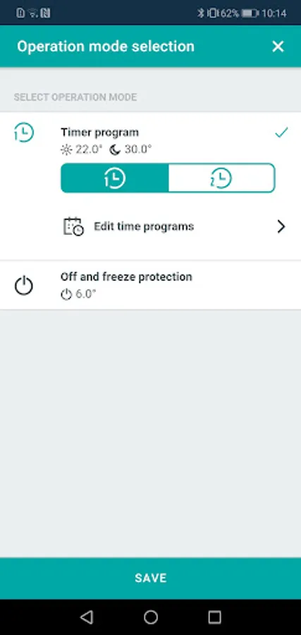 Clausius BT app enables you to have complete control over heating or cooling. The app is compatible with Seltron room thermostats RT.. and WT.. and a room unit RCD20. They connect with the app via Bluetooth.