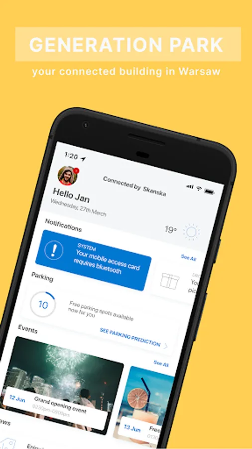 Generation Park app is a community application with integrated building services such as access and parking for the Generation Park project in Krakow, Poland.