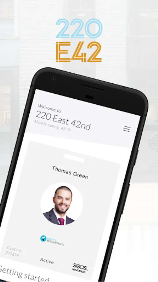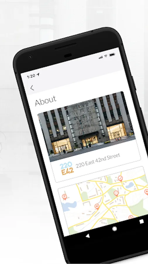 This application is intended for employees that work in 220 East 42nd Street and their visitors. Important information about the building can be found on the dashboard, which dynamically changes throughout the day. The app allows employees frictionless access into the property and will enable them to invite guests to the property as well. Additional modules are available including, amenity reservations, events, community information, etc.